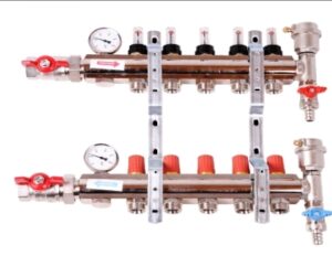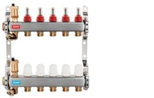 | Qualitherm szerelt osztók golyóscsappal töltő ürítő szelepekkel, automata légtelenítőkkel, tartókkal, beépített tömegárammérőkkel, hőmérőkkel, termofej fogadására alkalmas visszatérő szelepekkel krómozott kivitelben. | |||||